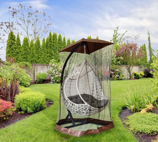 - Чехлы с москитными сетками для подвесных кресел. Очень удобный и эстетичный вариант – мелкое плетение сетки позволяет отлично фокусировать взгляд на внешних предметах. В результате – вы защищены от всех насекомых, но видите все, что происходит извне.