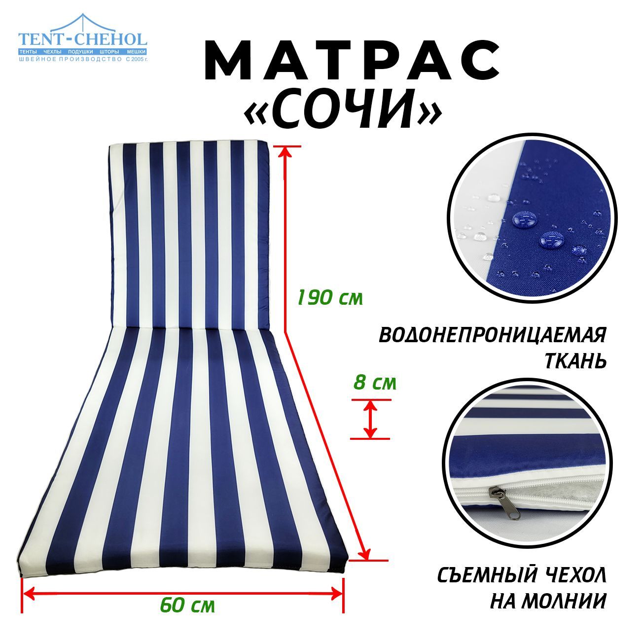Купить Матрас "Сочи" для шезлонгов 190х60х8 цена 2300 руб. в Москве и СПб с доставкой по России