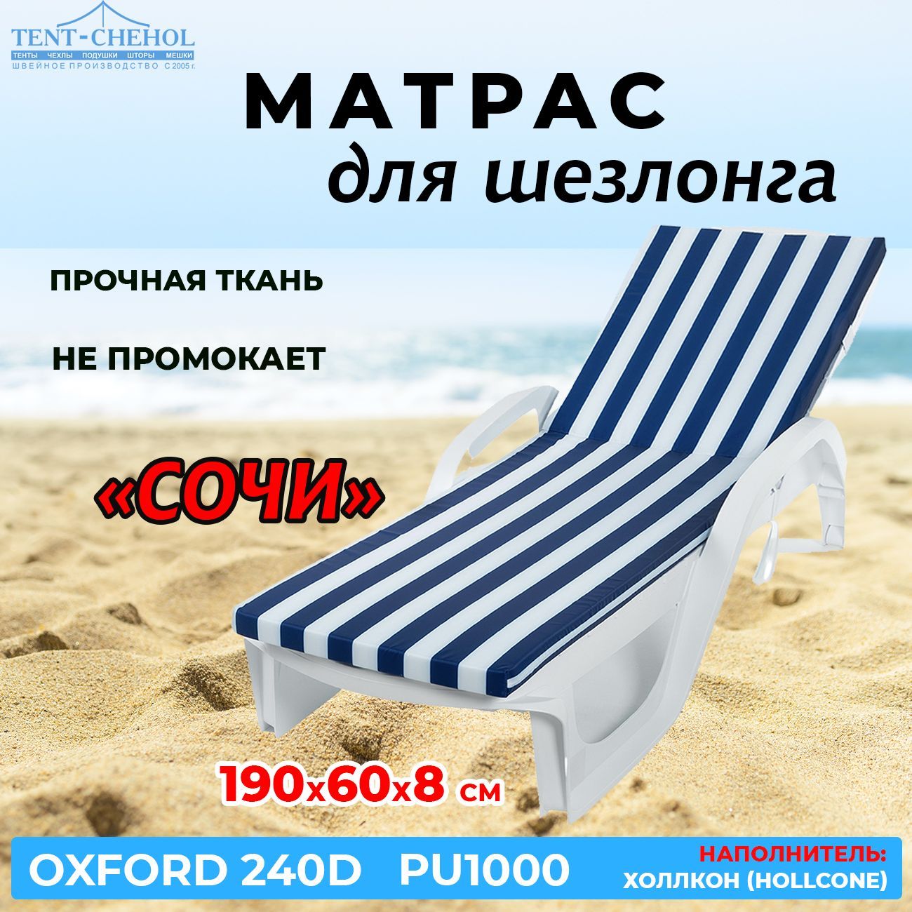 Матрас "Сочи" для шезлонгов 190х60х8