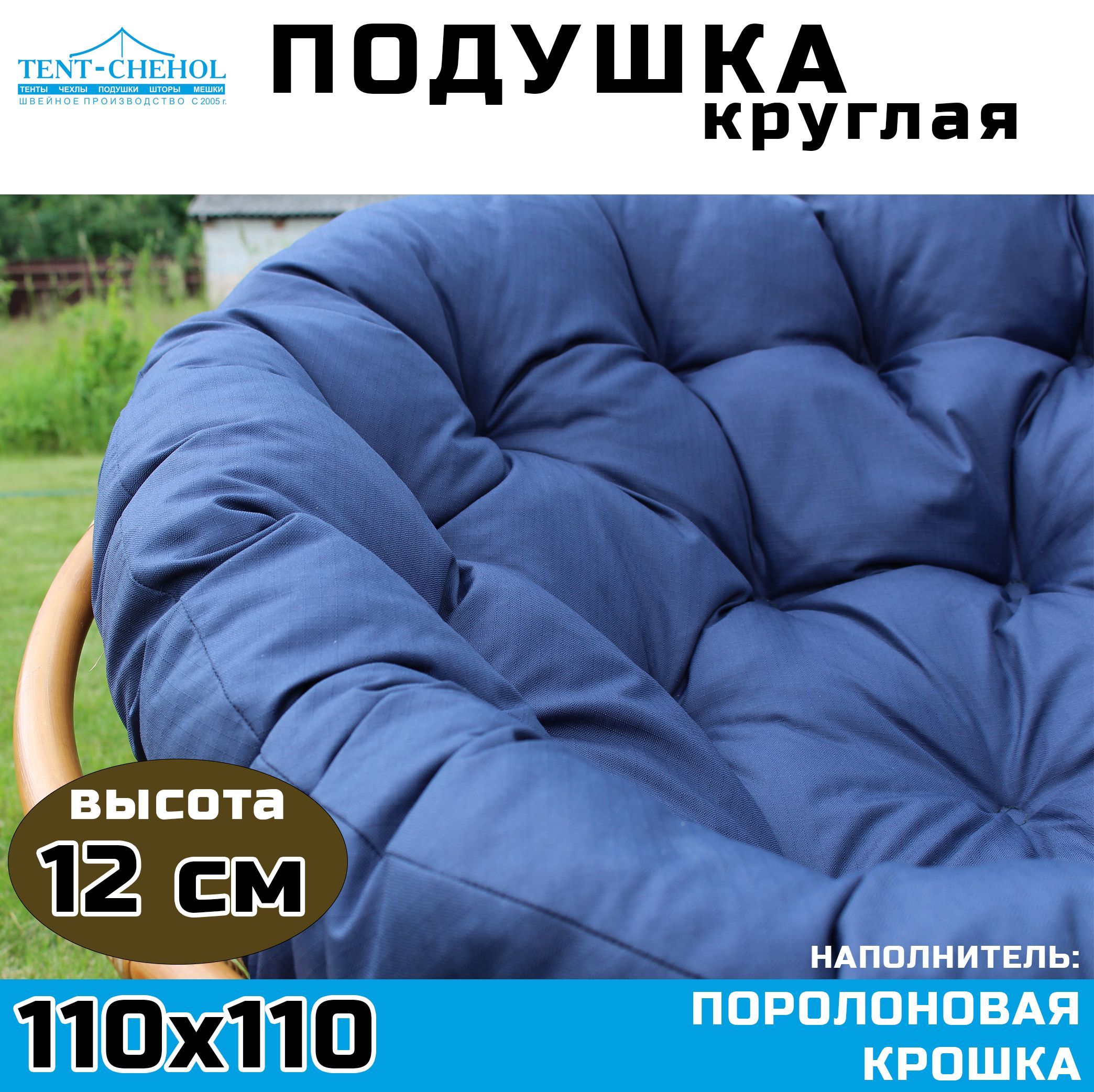 Купить Подушка круглая (Папасан) 110 см, синяя (Рипстоп) цена 3500 руб. в Москве и СПб с доставкой по России