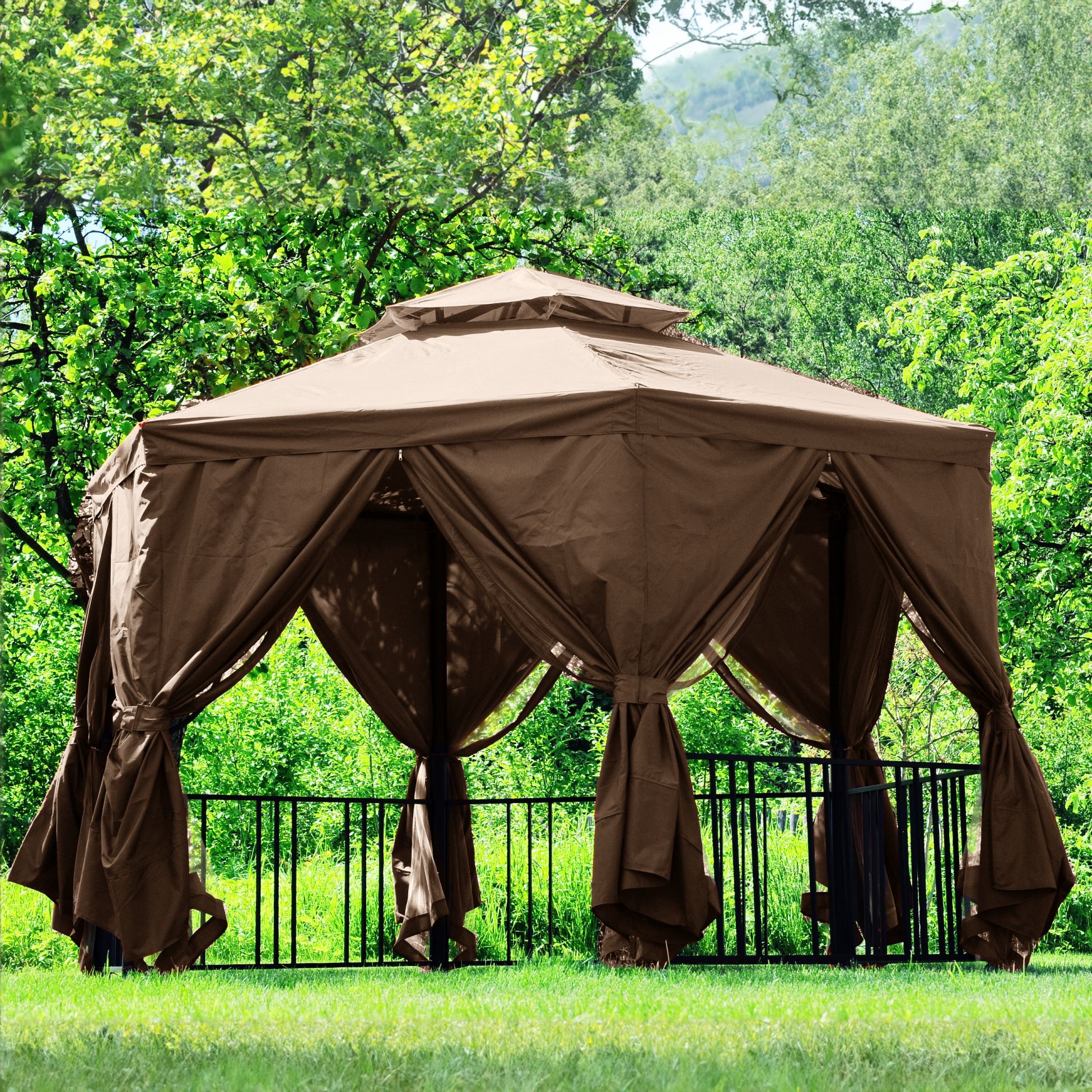 Краткое описание «Комплект для 6-гранной беседки: тент с клапаном + шторы+ антимоскитные сетки»