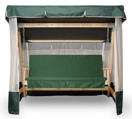 Отдых на деревянных качелях является очень комфортным, это отличное место для того, чтобы расслабиться после тяжелого рабочего дня и отдохнуть. Взрослые могут посидеть в этих качелях вечерами и выпить кофе, почитать книгу, или просто отдохнуть. Дети иногда проводят на таких качелях целый день, на них они могут играть и кататься. Однако, отдых очень сильно могут испортить разнообразные внешние факторы, например палящее солнце, осадки, либо же надоедливые насекомые, которые больно кусаются и мешают отдыху. Однако, выход все же есть, вам просто нужно приобрести специальный тент, предназначенный для садовых качелей. Кроме того, некоторые модели тентов идут в комплекте.